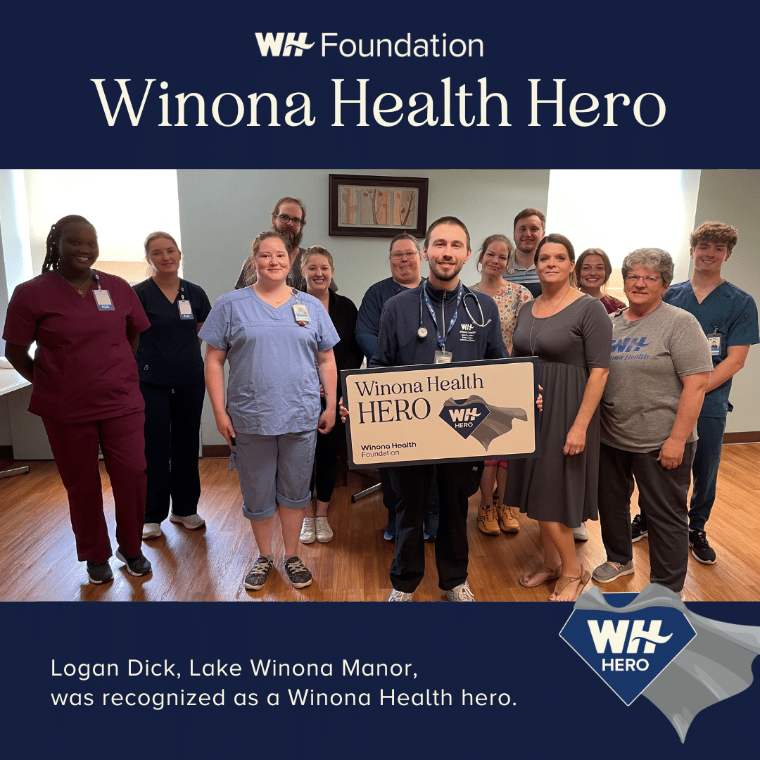 Congratulations to Logan Dick, Lake Winona Manor, for being honored as a Winona Health HERO!